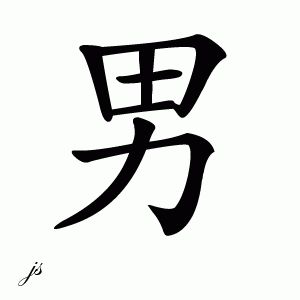 The character for man (男 – nán) is made up of two components: on top is the character for field (田 – tián), and on the bottom is the character for power (力 – lì). Before the days of skyscrapers and big multinational companies in China, a man was someone who demonstrated his power by working in the field. Thus, we have the character for man.
