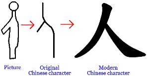 As Chinese characters have been around for thousands of years, many of the modern day, simplified characters have simply evolved from ancient pictographs. Take, for example, the character for person (人 – rén):