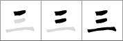 That brings us to the character for two (二 – Èr). Simply add another stroke to one, and you’ve got two. Once you get beyond one stroke, you have to also consider the stroke order when writing Chinese characters. The character for two shows us that one element of stroke order is writing from top to bottom. Well, two is OK, but three’s company, right?