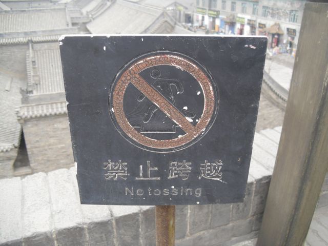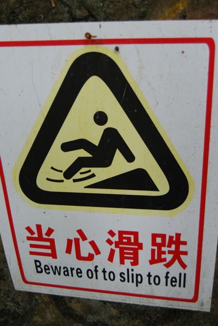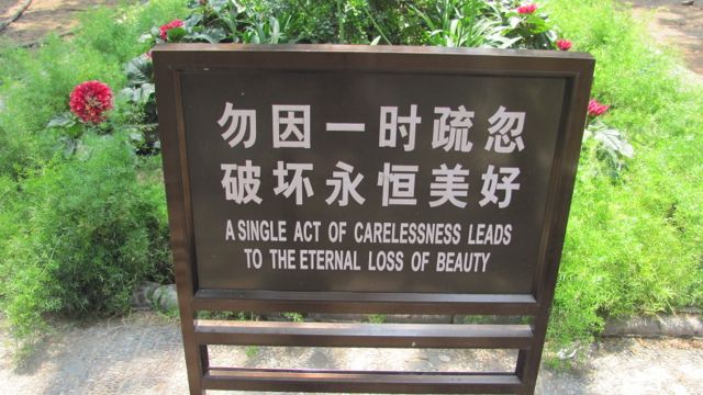 What happens when you mix Chinese and English? Well, you end up with Chinglish (中式英语 – zhōng shì yīng yǔ). Sometimes, Chinglish is just formed by using Chinese grammatical structures in English. Trying to translate Chinese directly into English will give you sentences such as “I very like play basketball” (我很喜欢打篮球 – wǒ hěn xǐ huan dǎ lán qiú) or “I with my friend together have dinner” (我跟我的朋友一起吃晚饭 – wǒ gēn wǒ de péng yǒu yī qǐ chī wǎn fàn). Other times, it is a result of trying to directly translate Chinese words for foreign things. That’s why I’ve had students ask me about “Christmas old man” (圣诞老人 – shèng dàn lǎo rén – Santa Claus) and the “fire chicken” (火鸡 – huǒ jī – turkey). Although the Chinese government is doing its best to eradicate Chinglish, thankfully they aren’t quite there yet. In many tourist sights, you’ll find an abundance of hilarious Chinglish signs. You’ll also find plenty of Chinglish on menus of restaurants, and you can even find it printed on shirts in local markets. For those of you who haven’t had the chance to laugh your ass off at ridiculous Chinglish all around China, I’ve built up a collection of some of my favorite photos from my years of living here. Here are 20 of my favorites: