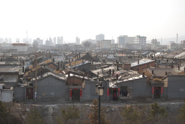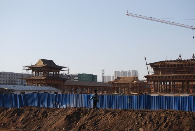 To help bring in the tourist renminbi (人民币 – rén mín bì), Datong has recently been completely rebuilding historical sites that were destroyed in the past. The ancient City Wall (城墙 – chéng qiáng), which isn’t quite finished yet, is now open for tourists to stroll along. Over one side of the wall, you can take in the views of the old city. Below, you see traditional one story homes – many of them are crumbling and others have already been completely torn down. Time will tell how Datong plans to fix up these historical neighborhoods. Over the other side, you see the rapid development of the city in action – cranes are everywhere, high-rise apartments are sprouting up, and massive shopping malls fight for attention amidst the hordes of people.