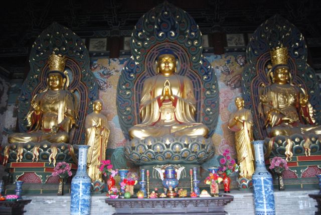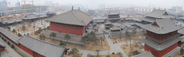 After its recent facelift, this sprawling complex really is quite visually impressive. There are many halls to visit, all featuring a variety of statues and artwork. Visitors can also climb to the top of the pagoda to get a bird’s eye view of the old city. From here, you can spot even more cranes, and what appear to be the makings of more newly rebuilt historical structures. Looking down on the contrast below, it was here that I decided to dub Datong an “old, new, old city.” With thousands of years of history, construction and modernization everywhere you look, and the skeletons of ancient buildings coming back to life, it seemed like a fitting nickname.