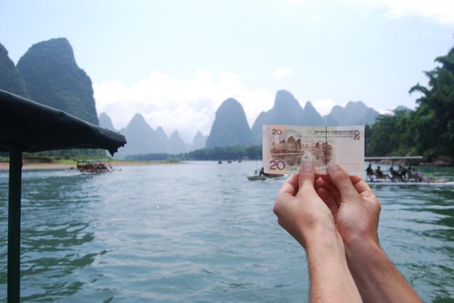 Yangshuo is easily reachable by bus from Guilin, or if you are more adventurous and have a little more kuai to throw around, you can cruise the Li River (漓江 – Lí jiāng) all the way there and back. As Han Yu, a Tang Dynasty poet once wrote, “The river forms a green gauze belt, the mountains are like jade hairpins.” In fact, the scenery of the Li River is known all across China, as it was the inspiration for the back of the 20 yuan note.